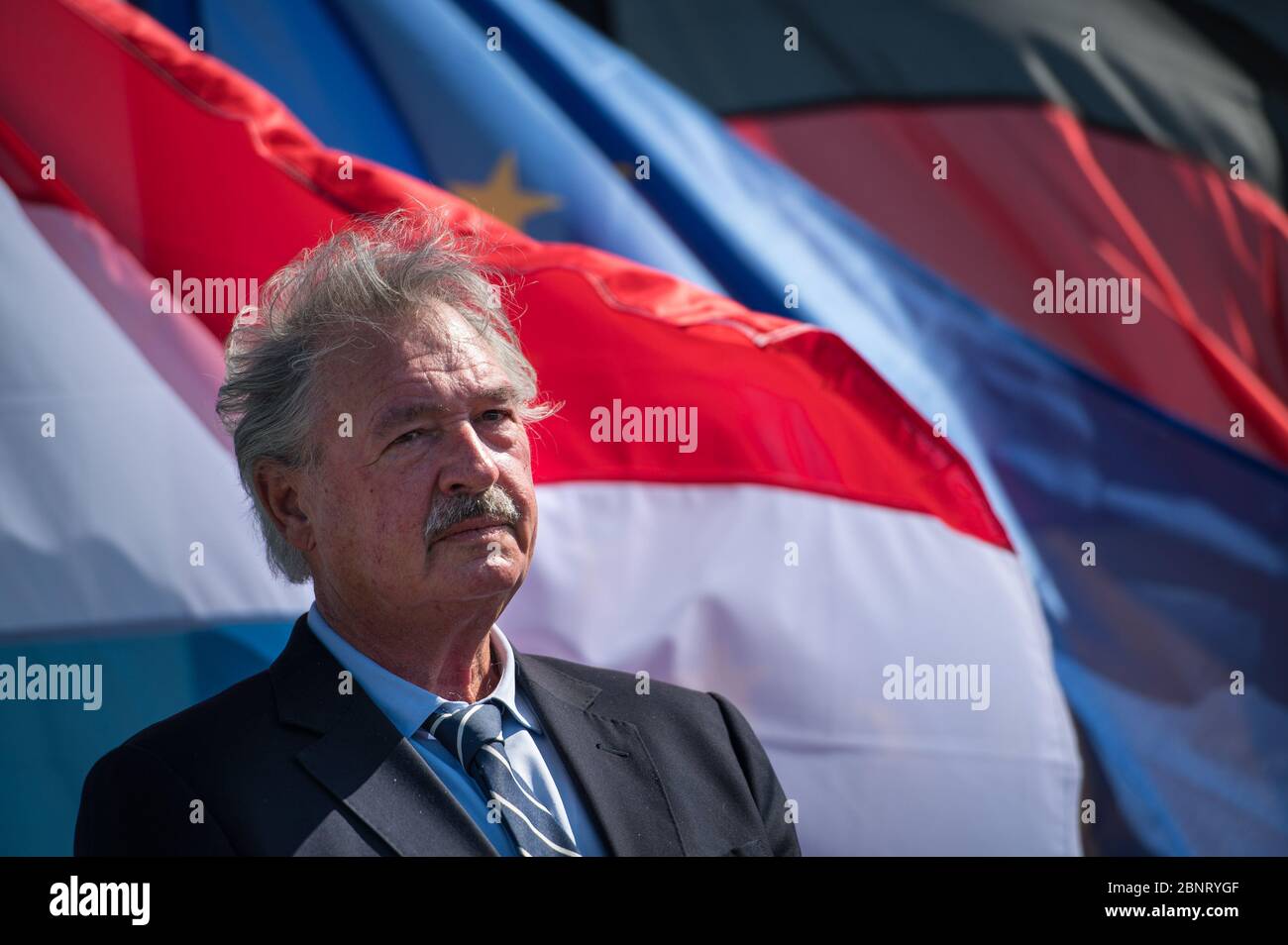 Schengen Luxembourg 16th May 2020 Luxembourg S Foreign Minister Jean Asselborn Stands In Front Of The Flags Of Luxembourg Europe And Germany During A Press Statement On The Moselle Bridge Which Connects The